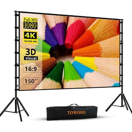 TOWOND 150-Inch Indoor and Outdoor Projector Screen with Stand