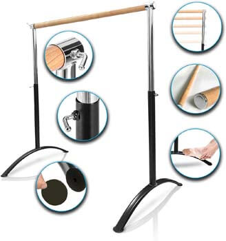 Short on space? Fret not! It is still possible for you to enjoy the benefits of a stable and wholesome ballet barre like this one. It does come about in a freestanding design that takes up as limited space as possible. Then again, its height adjusts accordingly to respond to your desired levels of comfort.